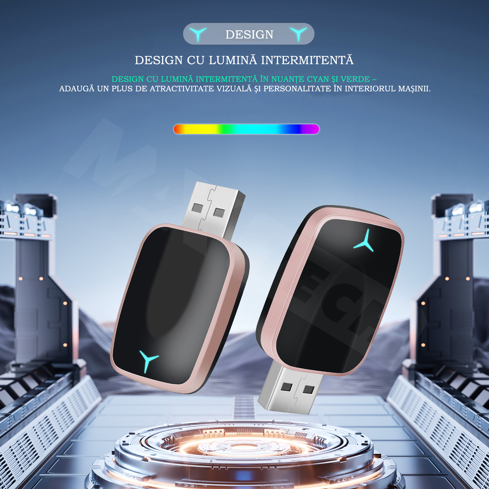 Conectare wireless instant – fara cabluri, fara demontare, doar plug & play direct in portul USB al masinii.