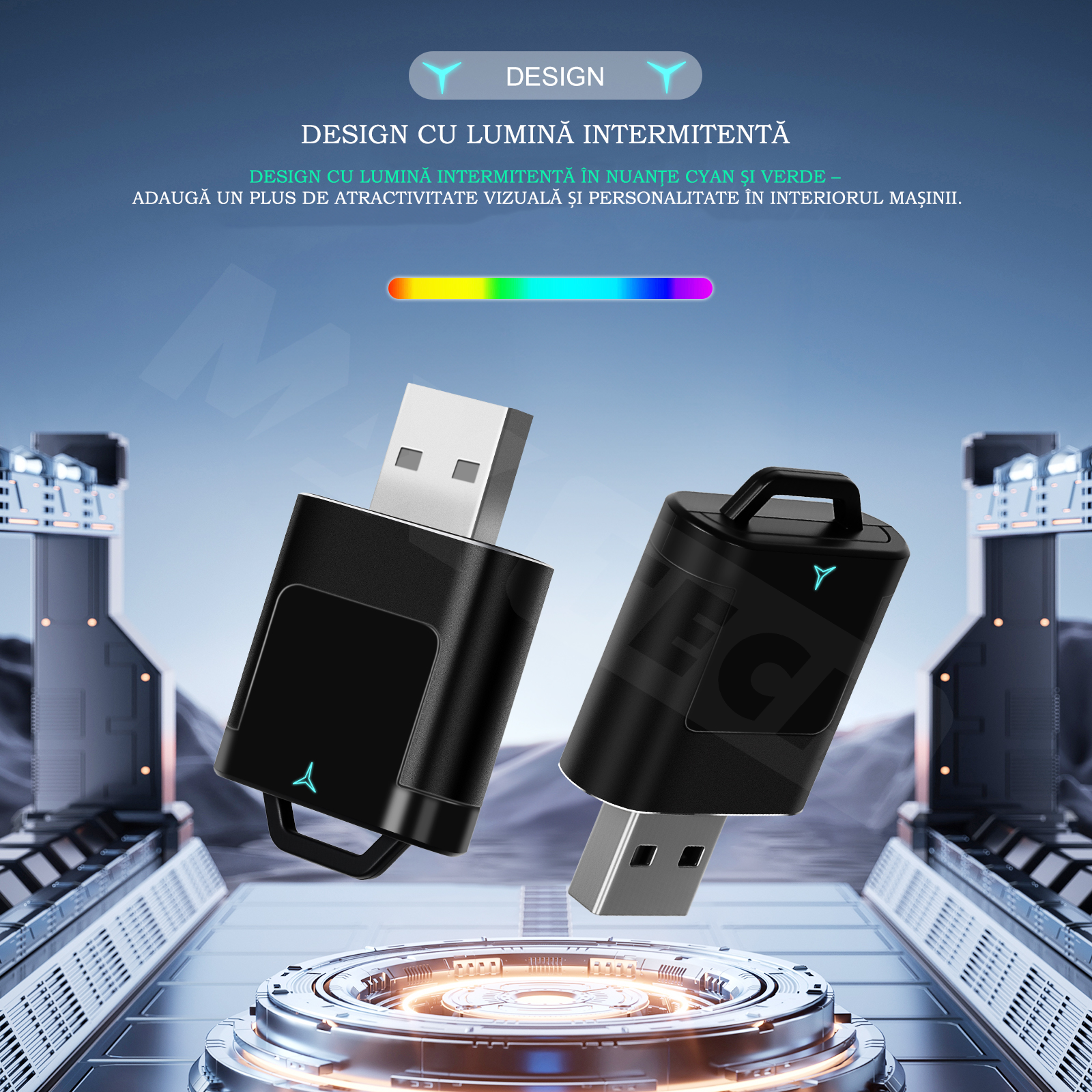 Conectare wireless instant – fara cabluri, fara demontare, doar plug & play direct in portul USB al masinii.