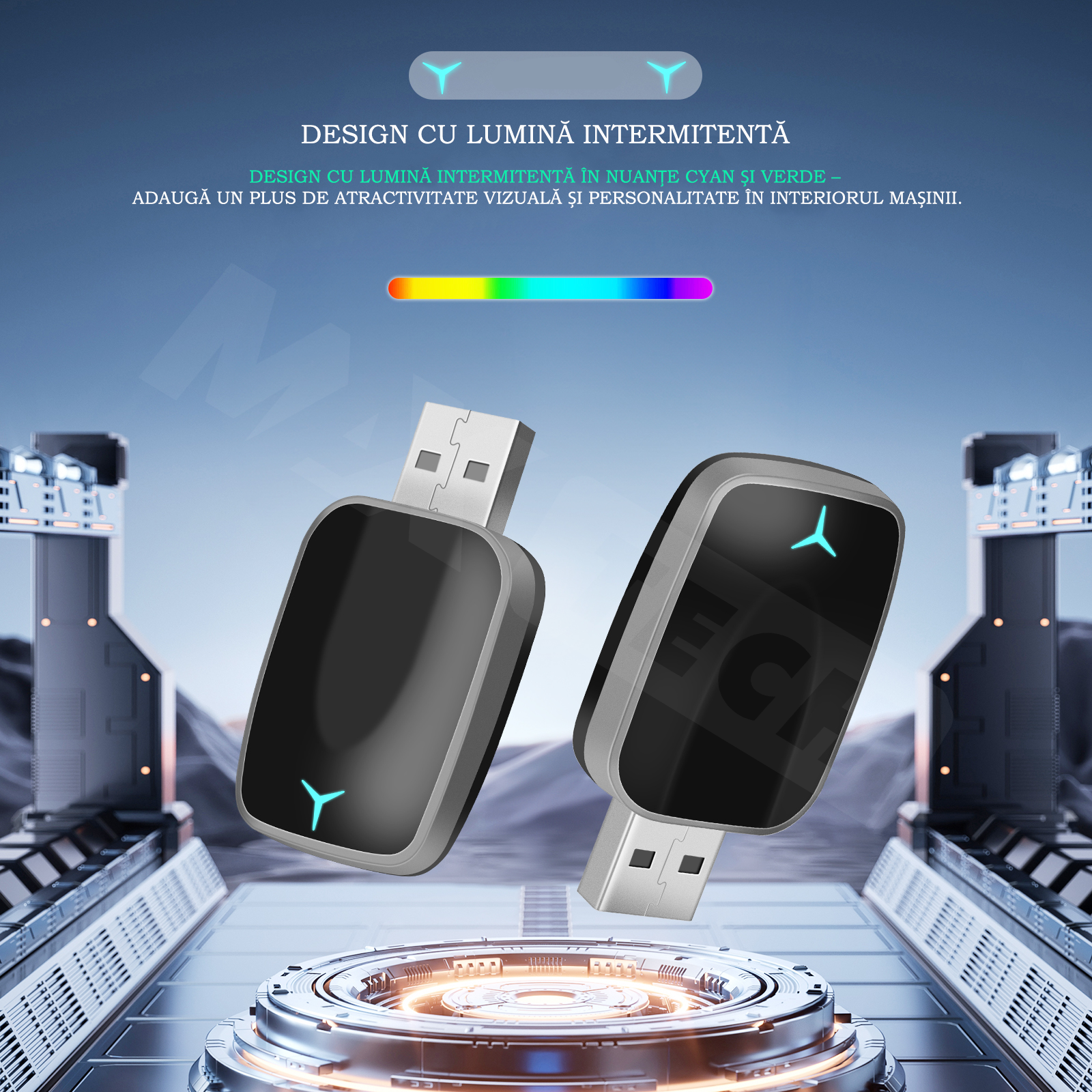 Design modern cu lumina intermitenta cyan-verde – adauga un plus de stil si personalitate interiorului masinii.