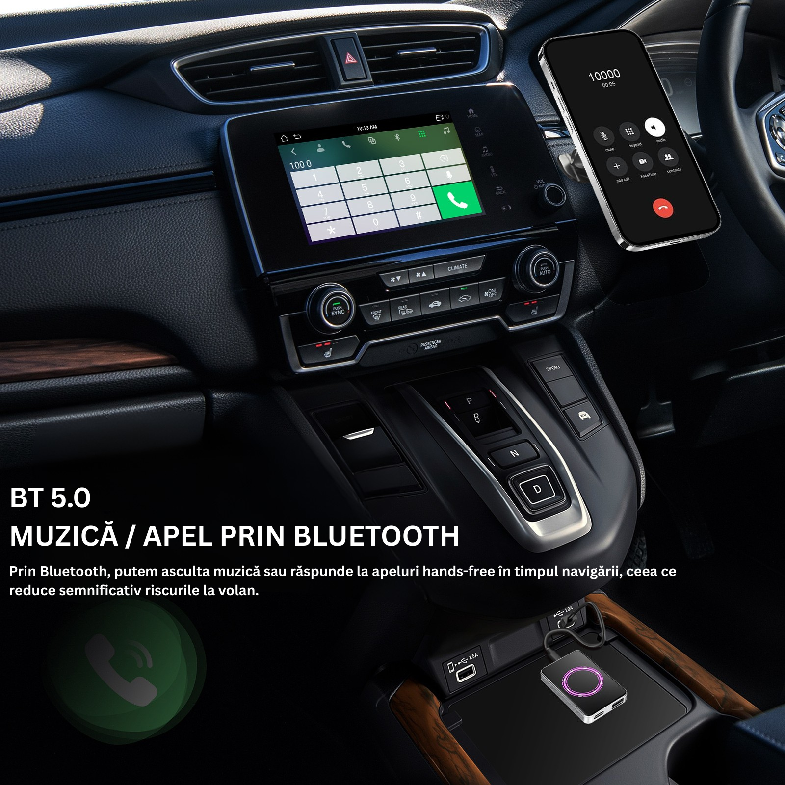 BT 5.0 – Muzica si apeluri prin Bluetooth – Redare audio de calitate si apeluri hands-free direct prin sistemul masinii.