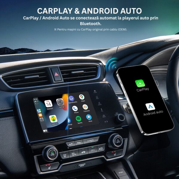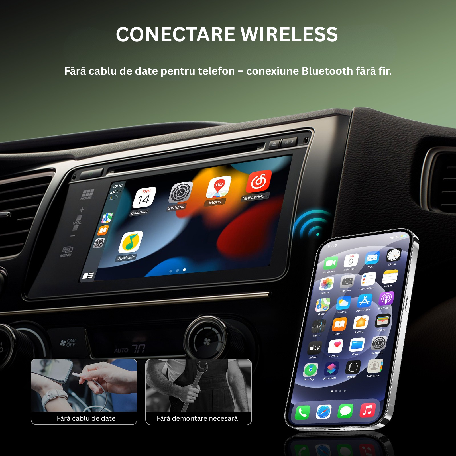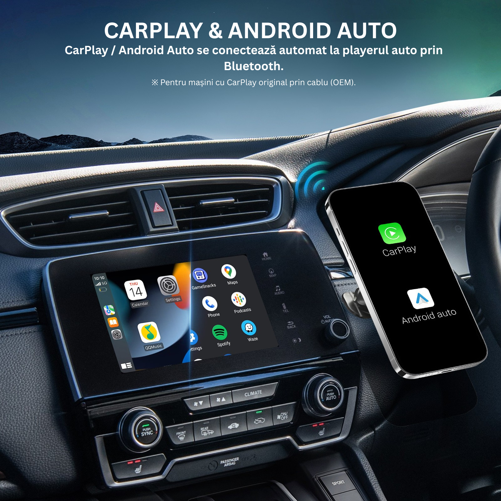 CarPlay & Android Auto Wireless – Conectare automata la sistemul masinii prin Bluetooth, fara cabluri .