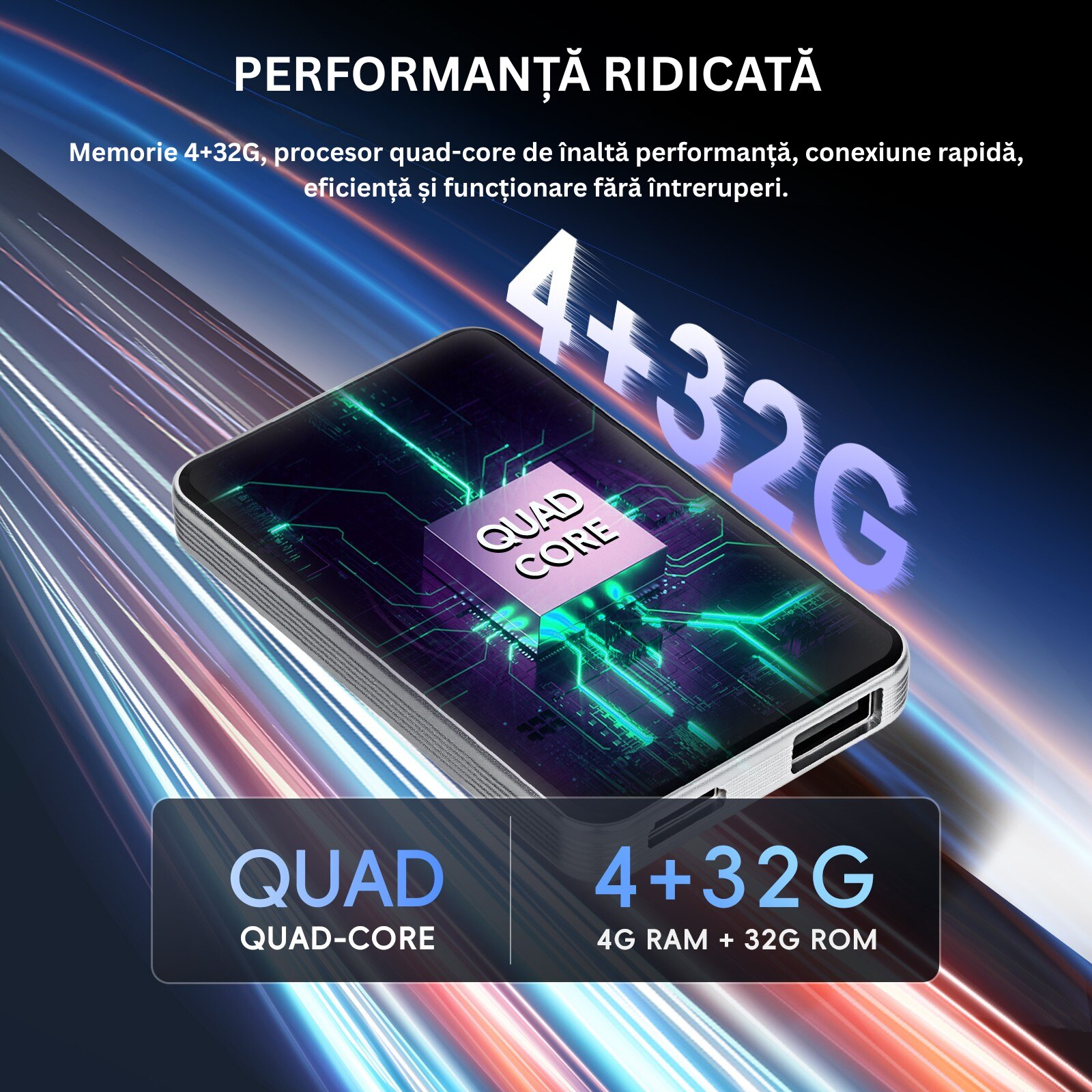 4+32G si procesor Quad-Core – Viteza crescuta, multitasking fluid si pornire instanta pentru aplicatii si media.