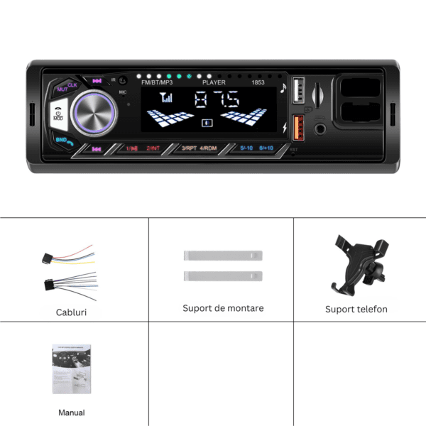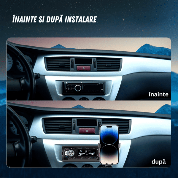 Desavarseste-ti experienta de condus cu acest sistem de stereo auto inovator de la MaxTech®, conceput pentru o integrare perfecta cu smartphone-ul tau. Avand un suport practic pentru telefon, iti permite accesul usor la navigatie si la controlul muzicii, mentinandu-ti dispozitivul in siguranta.