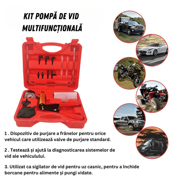 • Kitul de pompa de vid poate testa toate tipurile de setari si echipamente importante.