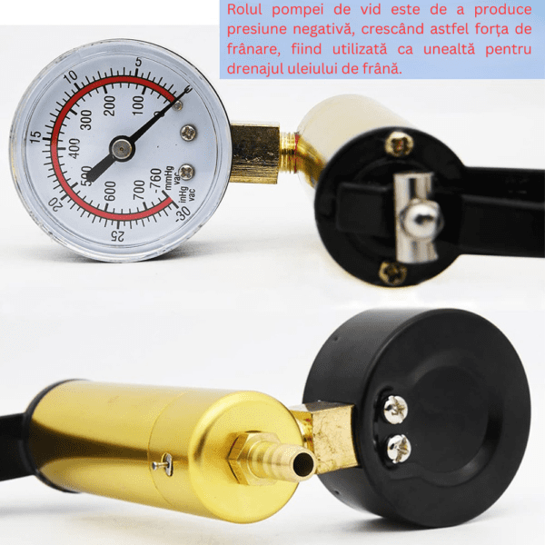 • Rolul pompei de vid este de a produce presiune negativa, crescand astfel forta de franare, fiind utilizata ca unealta pentru drenajul uleiului de frana.