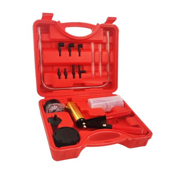 Kit Profesional Pompa Vid Auto pentru Testare/diagnosticare Frane MaxTech®, ABS, EGR, Purjare Linii de Combustibil si Drenaj Lichid Frana, cu Manometru si Adaptoare