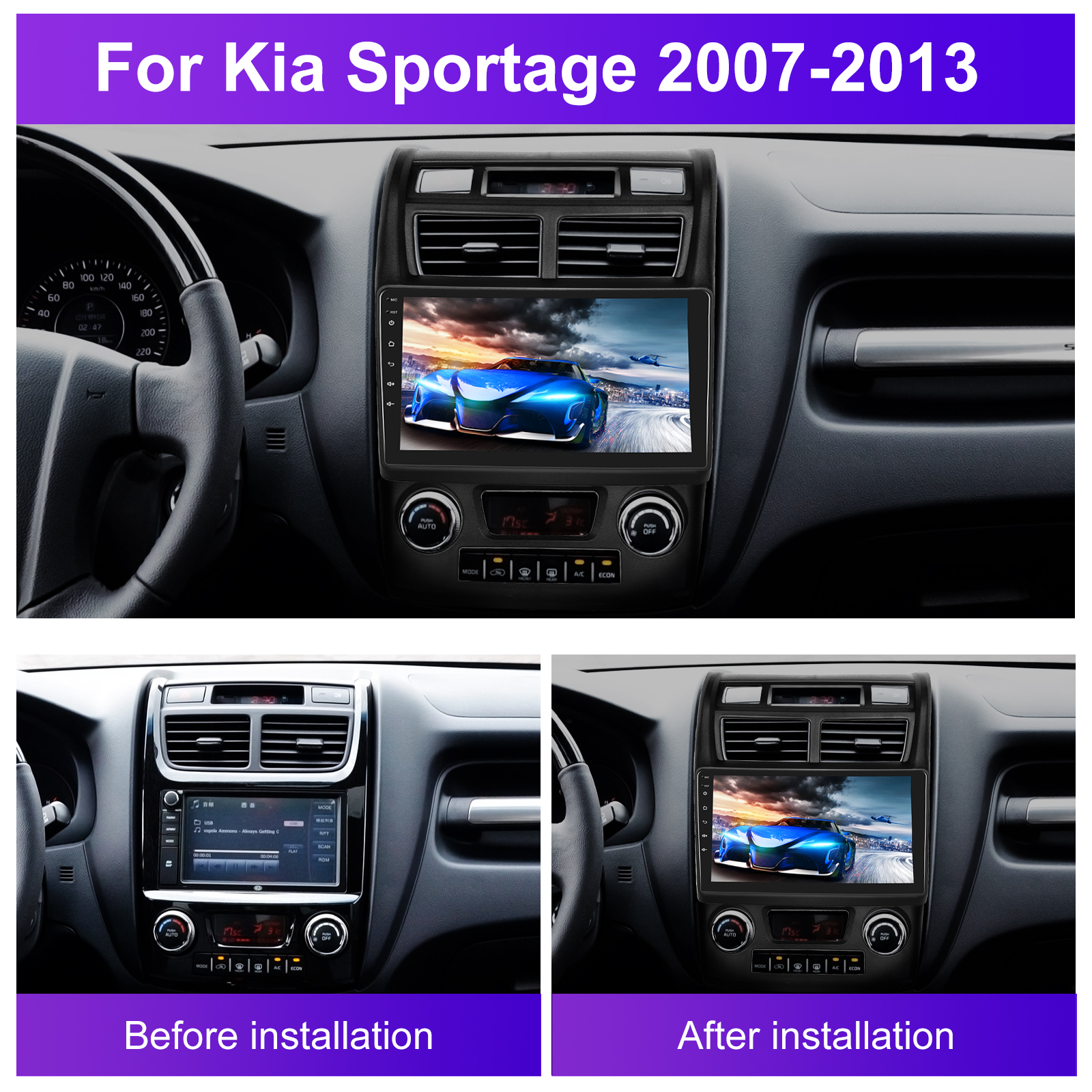 Kit Rama Adaptoare dedicata KIA Sportage 2007-2013 pentru navigatie cu android, MaxTech®, de 9 inch