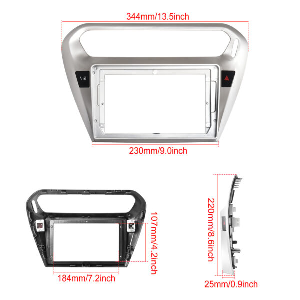 Kit Rama Adaptoare dedicata Peugeot 301 / Citroen C-Elysee (2012-2016) pentru navigatie cu android, MaxTech®, de 9 inch