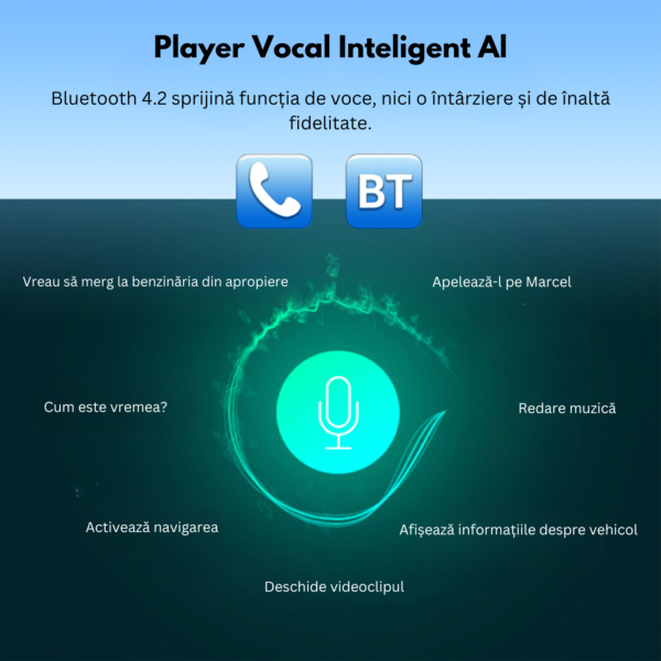 - Control simplificat: Poti controla aplicatiile telefonului de pe ecranul playerului, ceea ce face interactiunea mai comoda.