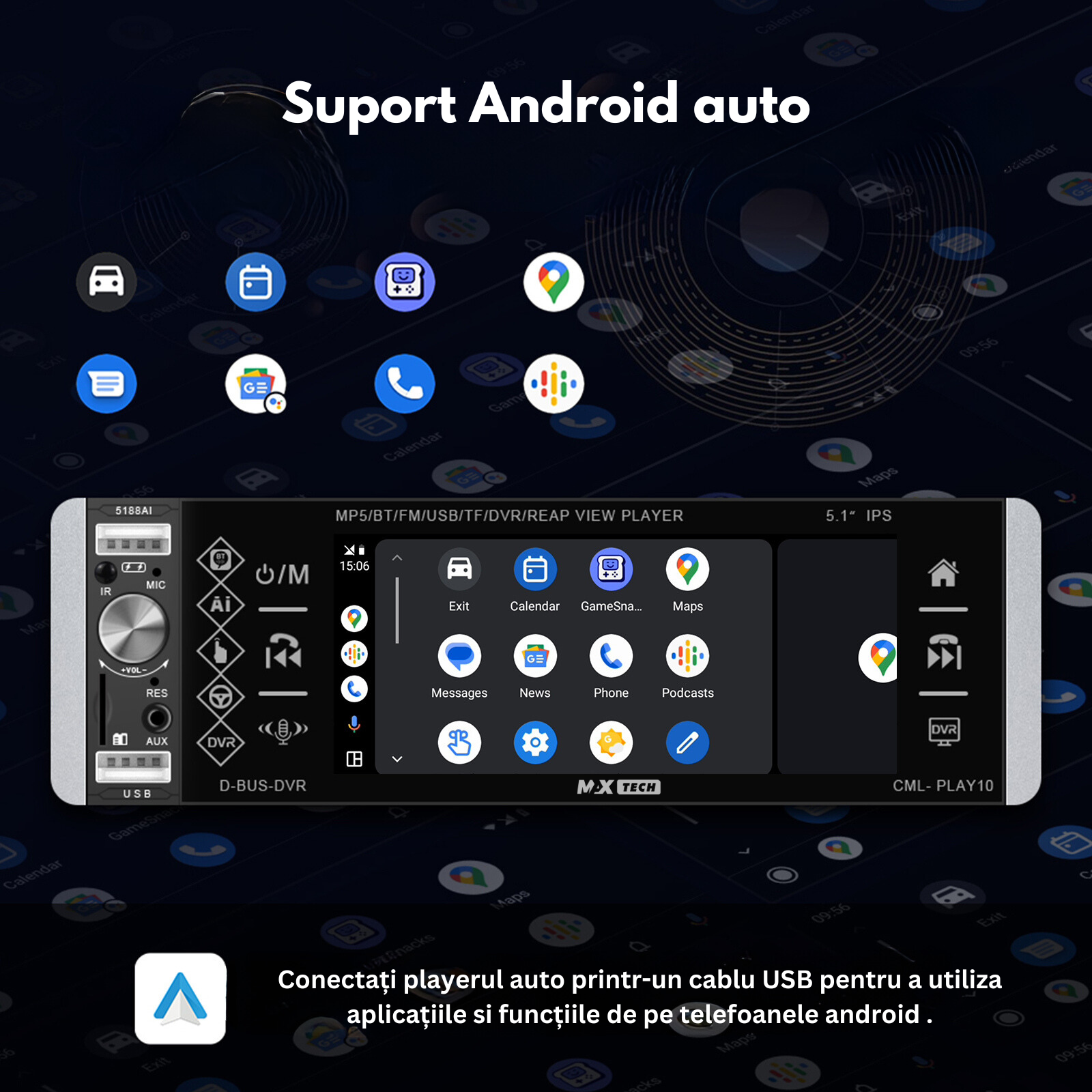 Android Auto transforma Mp5 playerul tau auto intr-un centru de infotainment inteligent, imbunatatind semnificativ siguranta, confortul si conectivitatea pe parcursul calatoriilor tale.
