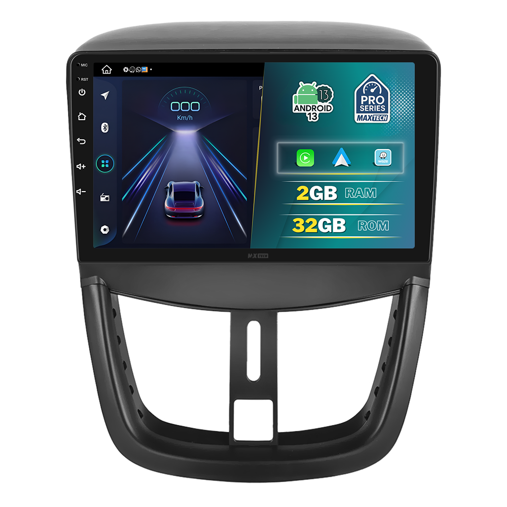 Navigatie Peugeot 207 (2009-2013) dedicata, MaxTech® PRO SERIES, 2 GB Ram 32 GB Rom, Carplay & Android auto, Ecran 10” HD Touch, GPS, Wifi, Bluetooth, Radio, USB, EQ, DSP, Waze, Youtube
