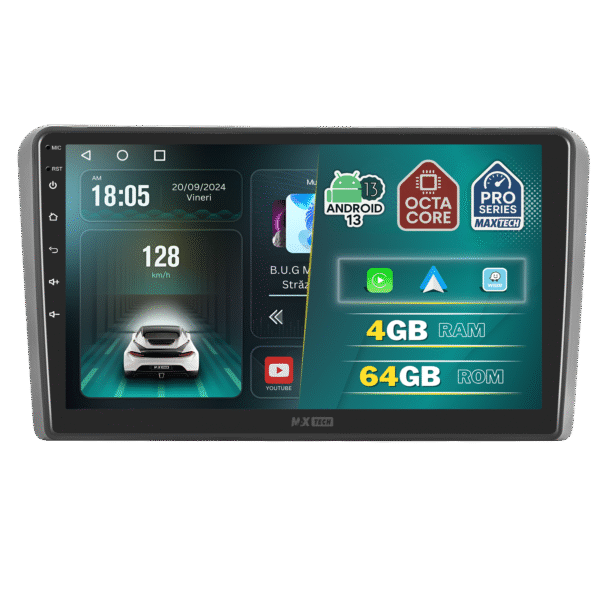 Navigatie Audi A3 8P Facelift 2008-2012 dedicata, MaxTech® PRO SERIES, 4 GB Ram 64 GB Rom OctaCore, Carplay & Android auto, Ecran 9 ” HD Touch, GPS, Wifi, Bluetooth, Radio, USB, EQ, DSP, Waze