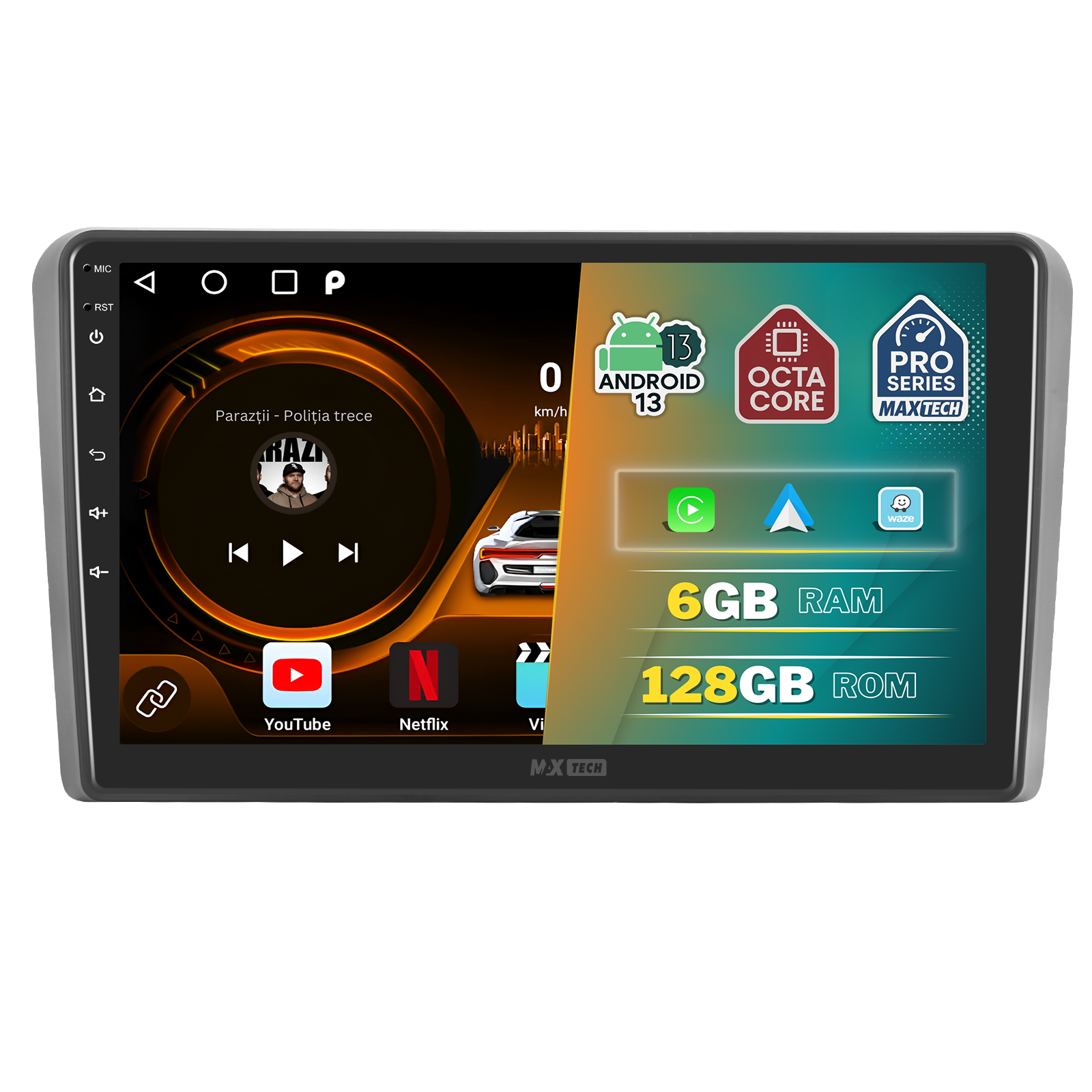 Navigatie Audi A3 8P Facelift 2008-2012 dedicata, MaxTech® PRO SERIES, 6 GB Ram 128 GB Rom OctaCore, Carplay & Android auto, Ecran 9” HD Touch, GPS, Wifi, Bluetooth, Radio, USB, EQ, DSP, Waze