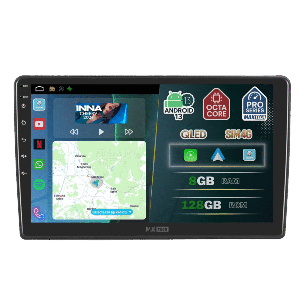 Navigatie cu procesor 8-core la 2.5GHz, 8GB RAM si 128GB stocare. Ecran QLED 1280×720 cu sunet Hi-Res (DSP ADI) pentru performanta rapida si vizualizare clara.