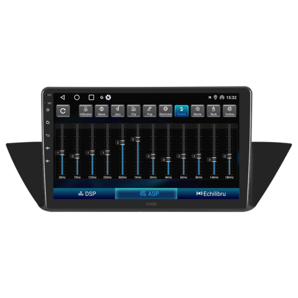 Sistemul include radio RDS cu afisare post si melodie, comutare automata pe frecventa cea mai buna si procesare audio DSP cu egalizator si filtru activ pentru sunet clar, echilibrat si personalizabil.