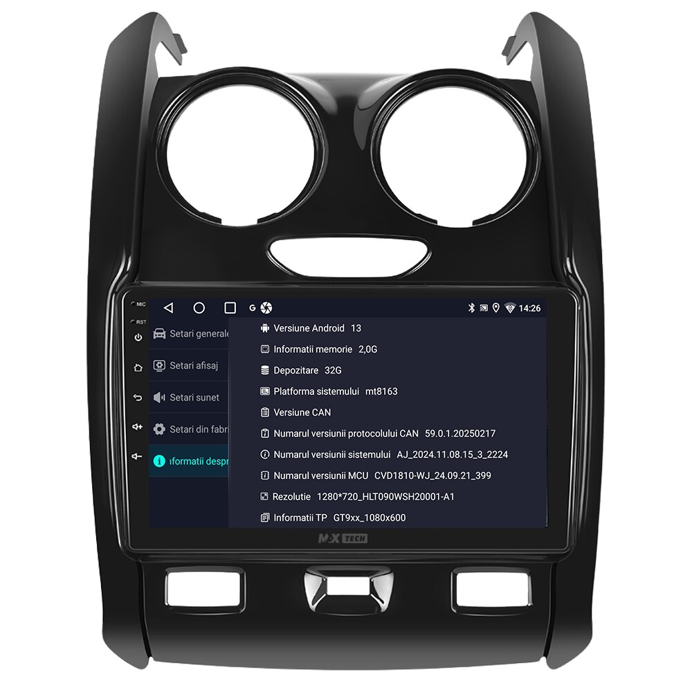 Navigatie Dacia Duster 1 2013-2017 dedicata, MaxTech® PRO SERIES, 2 GB Ram 32 GB Rom, Carplay & Android auto, Ecran 9 ” HD Touch, GPS, Wifi, Bluetooth, Radio, USB, EQ, DSP, Waze, Youtube
