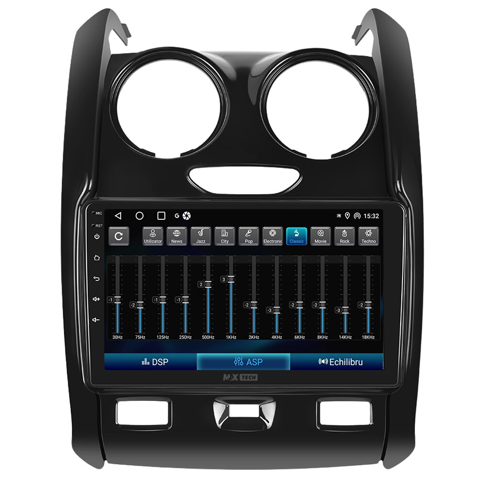 Sistemul include radio RDS cu afisare post si melodie, comutare automata pe frecventa cea mai buna si procesare audio DSP cu egalizator si filtru activ pentru sunet clar, echilibrat si personalizabil.