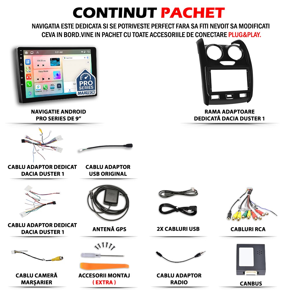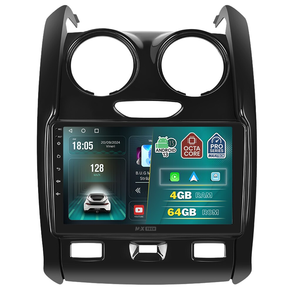 Navigatie Dacia Duster 1 2013-2017 dedicata, MaxTech® PRO SERIES, 4 GB Ram 64 GB Rom OctaCore, Carplay & Android auto, Ecran 9 ” HD Touch, GPS, Wifi, Bluetooth, Radio, USB, EQ, DSP, Waze