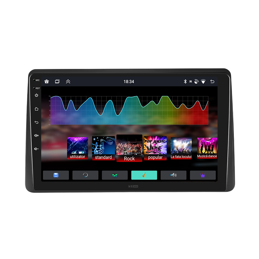 Sistemul include radio RDS cu afisare post si melodie, comutare automata pe frecventa cea mai buna si procesare audio DSP cu egalizator si filtru activ pentru sunet clar, echilibrat si personalizabil.