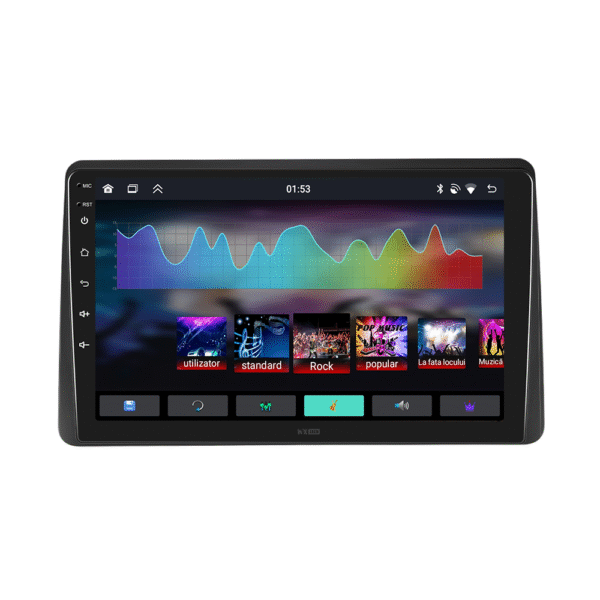 Sistemul include radio RDS cu afisare post si melodie, comutare automata pe frecventa cea mai buna si procesare audio DSP cu egalizator si filtru activ pentru sunet clar, echilibrat si personalizabil.