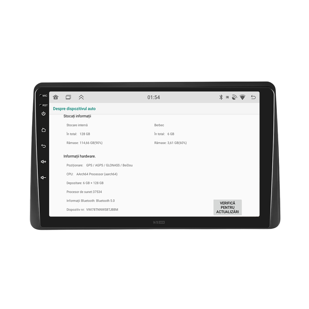 Sistemul MaxTech Pro Series este echipat cu un procesor OctaCore de tip 4+4, 6 GB RAM si 128 GB stocare, pentru multitasking rapid. Ecranul IPS HD de 1280×720 ofera culori reale si vizibilitate excelenta din orice unghi, cu design modern 2.5D.