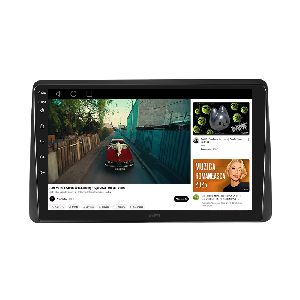 Sistemul include radio RDS cu afisare post si melodie, comutare automata pe frecventa cea mai buna si procesare audio DSP cu egalizator si filtru activ pentru sunet clar, echilibrat si personalizabil.