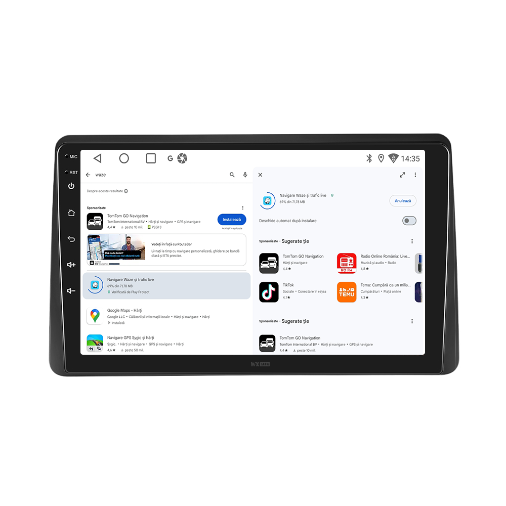Sistemul ofera functionalitate de navigatie compatibila cu Google Maps, Waze, iGO si alte aplicatii, cu posibilitatea utilizarii hartilor atat online, cat si offline. Suporta comenzile de pe volan, asigurand un control rapid si sigur in timpul condusului.