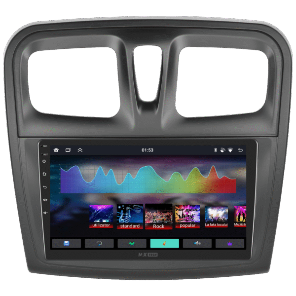 Sistemul include radio RDS cu afisare post si melodie, comutare automata pe frecventa cea mai buna si procesare audio DSP cu egalizator si filtru activ pentru sunet clar, echilibrat si personalizabil.