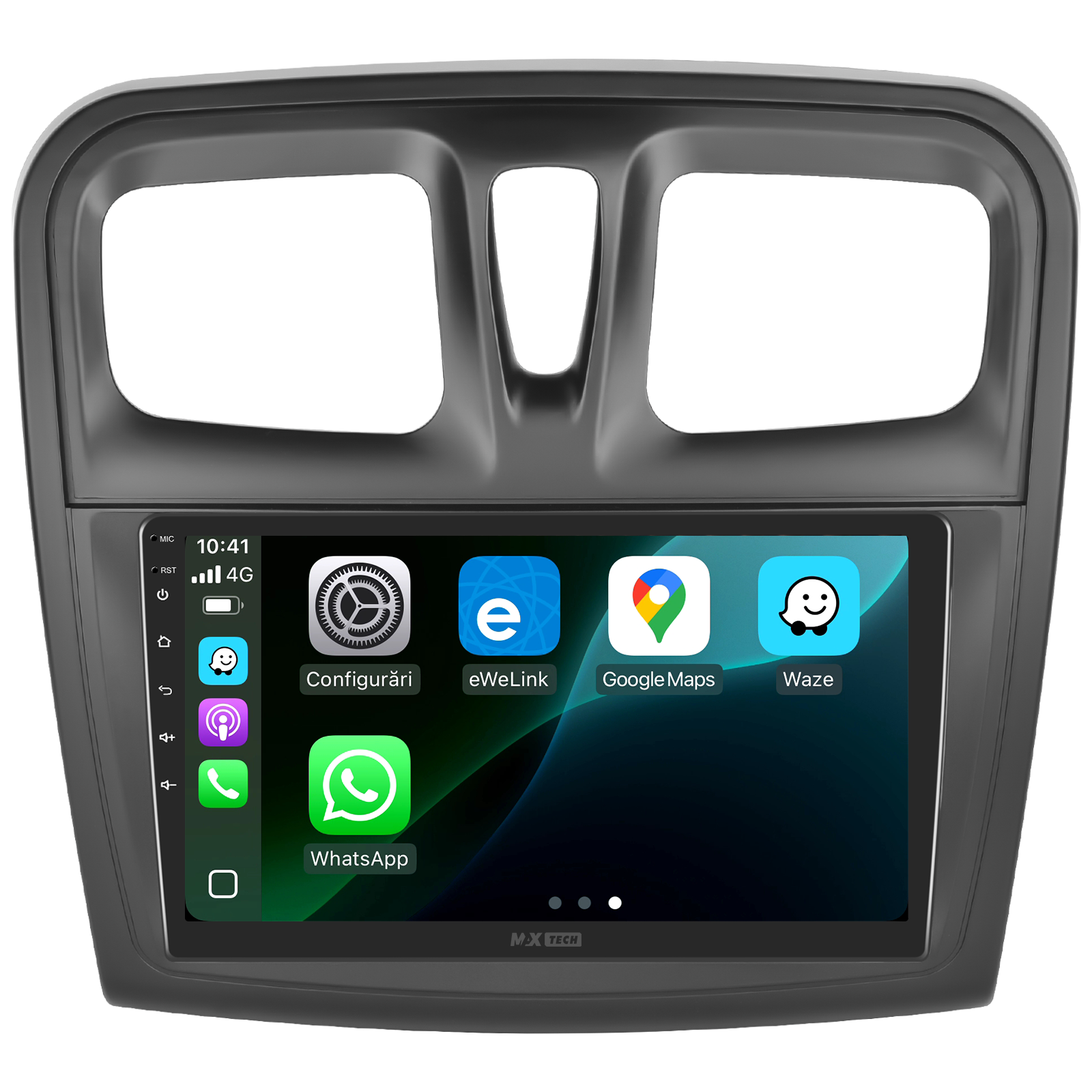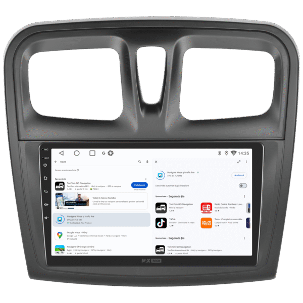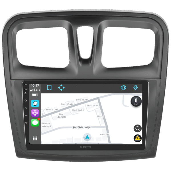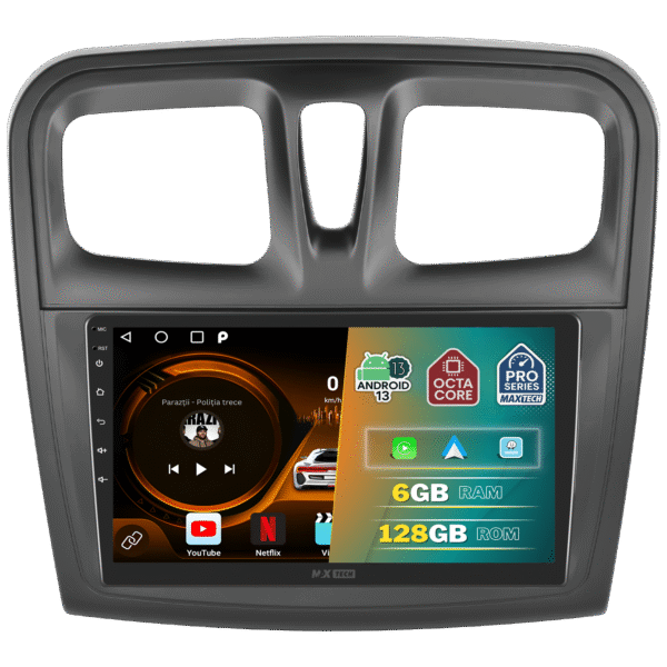 Navigatie Dacia Sandero 2 (2014–2017) dedicata, MaxTech® PRO SERIES, 6 GB Ram 128 GB Rom OctaCore, Carplay & Android auto, Ecran 9” HD Touch, GPS, Wifi, Bluetooth, Radio, USB, EQ, DSP, Waze