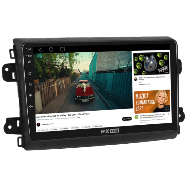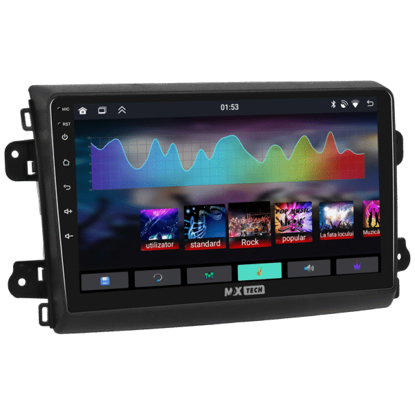 Sistemul include radio RDS cu afisare post si melodie, comutare automata pe frecventa cea mai buna si procesare audio DSP cu egalizator si filtru activ pentru sunet clar, echilibrat si personalizabil.