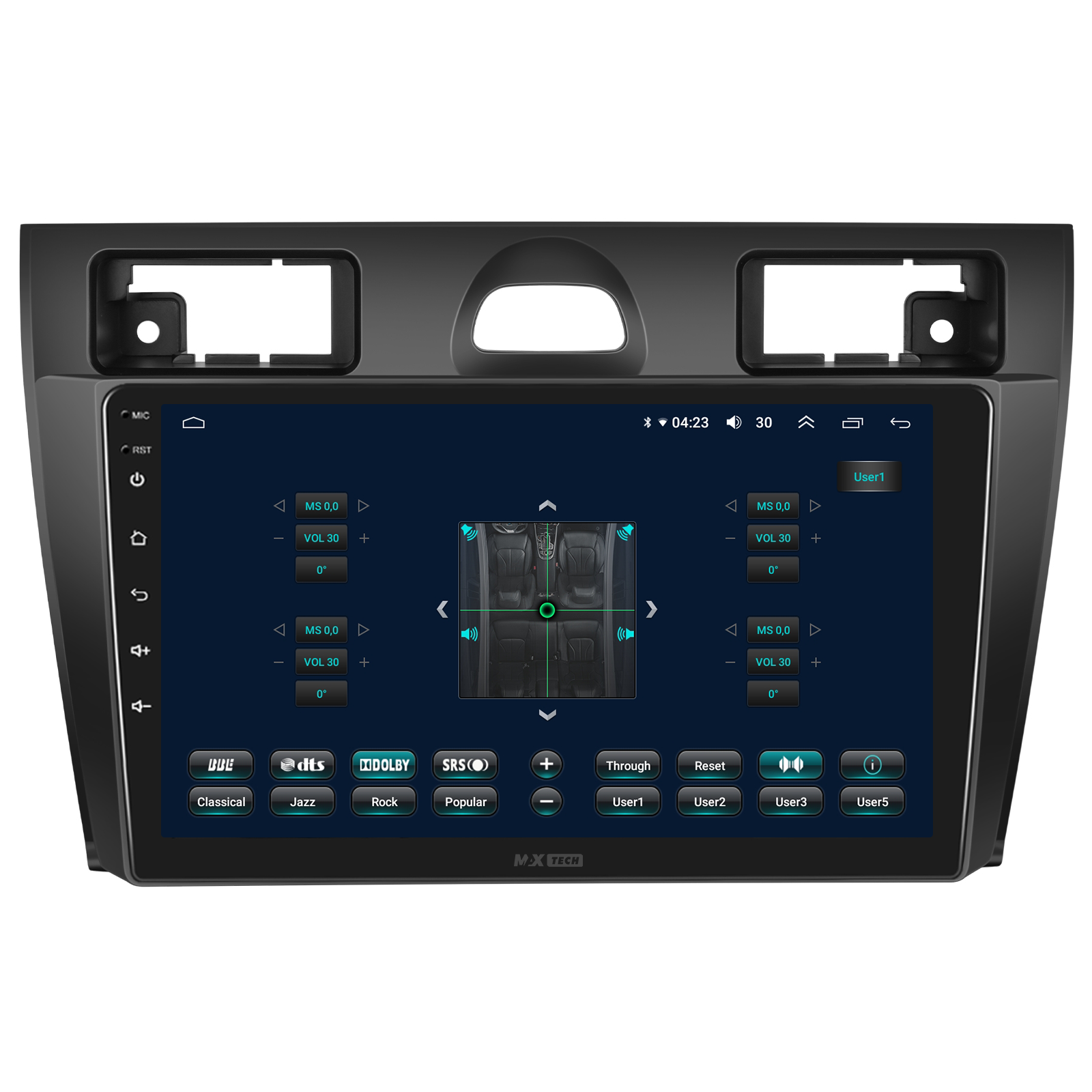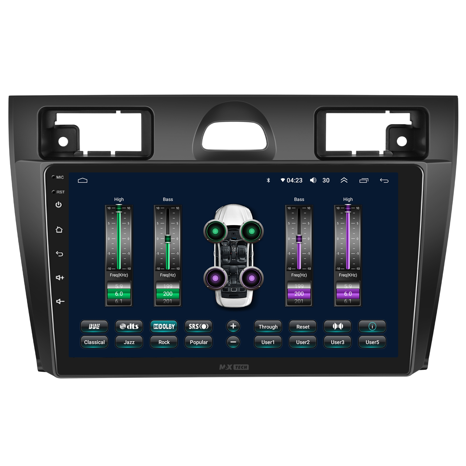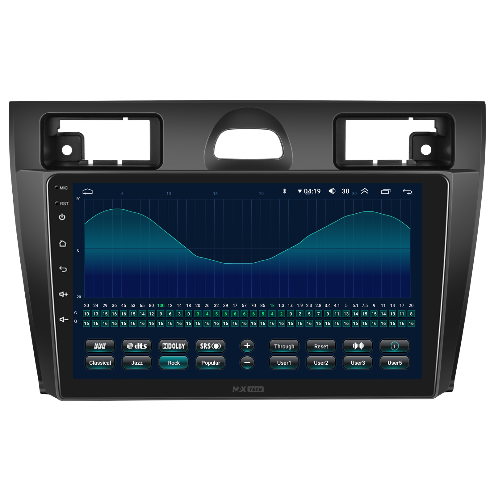 Sistem audio cu suport AM/FM/RDS, transmisie muzica online prin FM. Include equalizator (EQ) pentru ajustare fina a sunetului si filtru activ (Crossover) pentru directionarea frecventelor catre difuzoare dedicate (bass, inalte etc.).