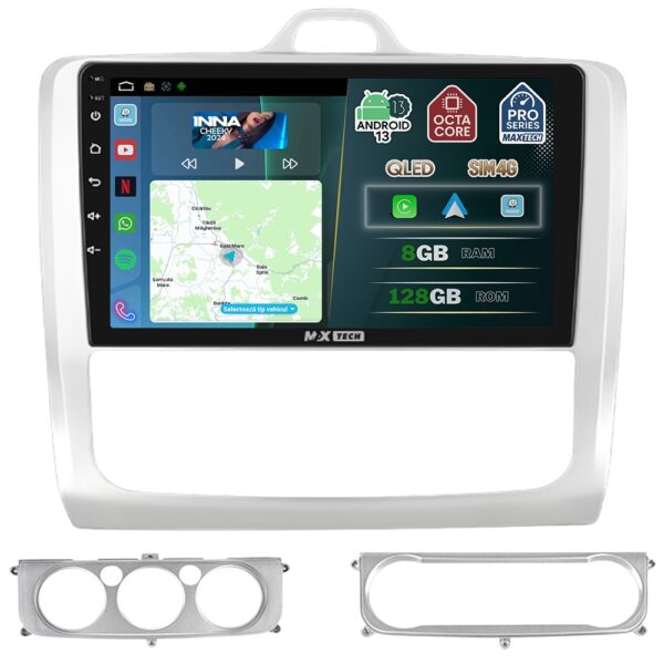 Navigatie Ford Focus 2 2004-2011 dedicata, MaxTech® PRO SERIES, 8 GB Ram 128 GB Rom OctaCore, Carplay & Android auto, Ecran 9” HD Touch, SIM 4G, GPS, Wifi, Bluetooth, Radio, EQ, Waze, Youtube