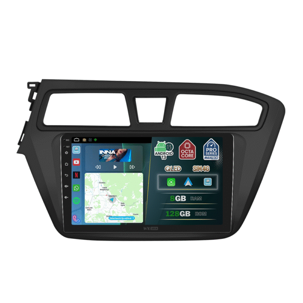 Navigatie Hyundai I20 2015-2017 dedicata, MaxTech® PRO SERIES, 8 GB Ram 128 GB Rom OctaCore, Carplay & Android auto, Ecran 9” HD Touch, SIM 4G, GPS, Wifi, Bluetooth, Radio, EQ, Waze, Youtube