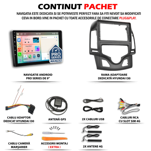 Navigatie Hyundai I30 (2007–2012) AC AUTOMAT dedicata, MaxTech® PRO SERIES, 8 GB Ram 128 GB Rom OctaCore, Carplay & Android auto, Ecran 9” HD Touch, SIM 4G, GPS, Wifi, Bluetooth, Radio, EQ, Waze