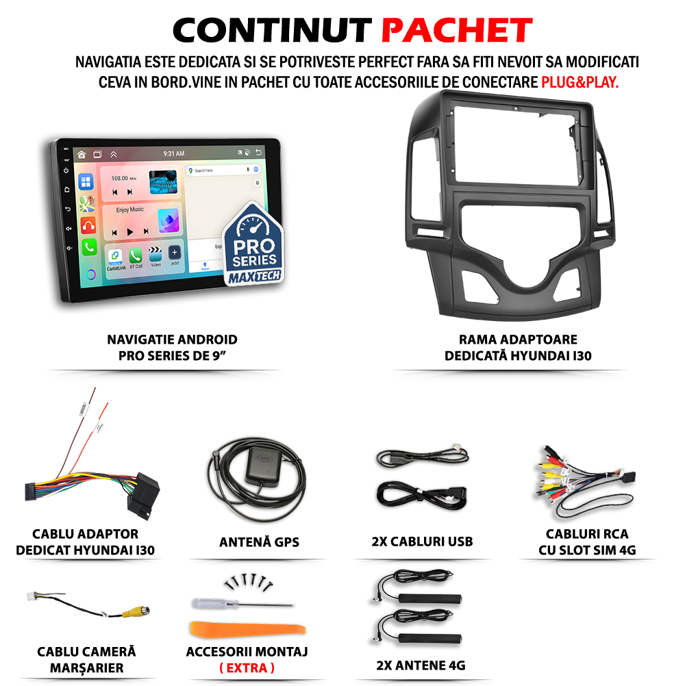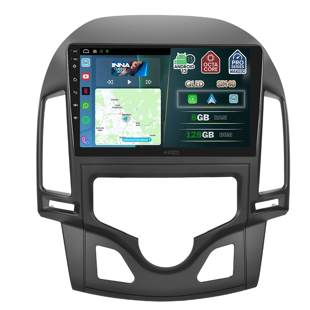 Navigatie Hyundai I30 (2007–2012) AC AUTOMAT dedicata, MaxTech® PRO SERIES, 8 GB Ram 128 GB Rom OctaCore, Carplay & Android auto, Ecran 9” HD Touch, SIM 4G, GPS, Wifi, Bluetooth, Radio, EQ, Waze