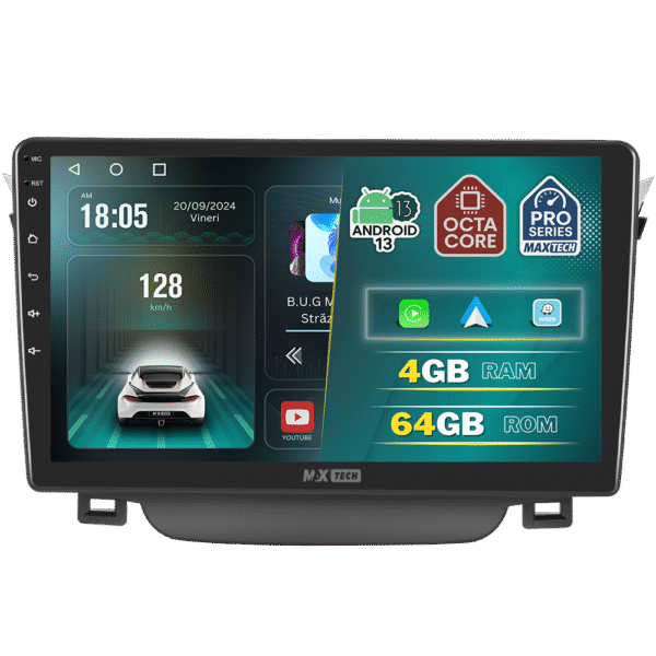 Navigatie Hyundai I30 2011-2016 dedicata, MaxTech® PRO SERIES, 4 GB Ram 64 GB Rom OctaCore, Carplay & Android auto, Ecran 9 ” HD Touch, GPS, Wifi, Bluetooth, Radio, USB, EQ, DSP, Waze, Youtube