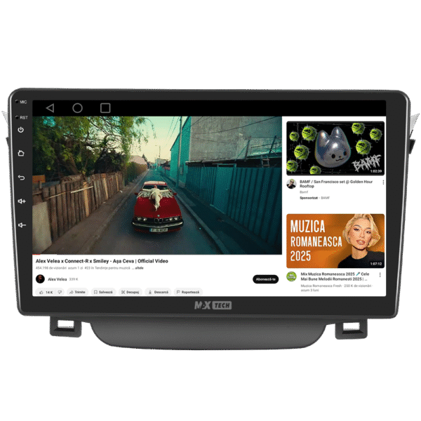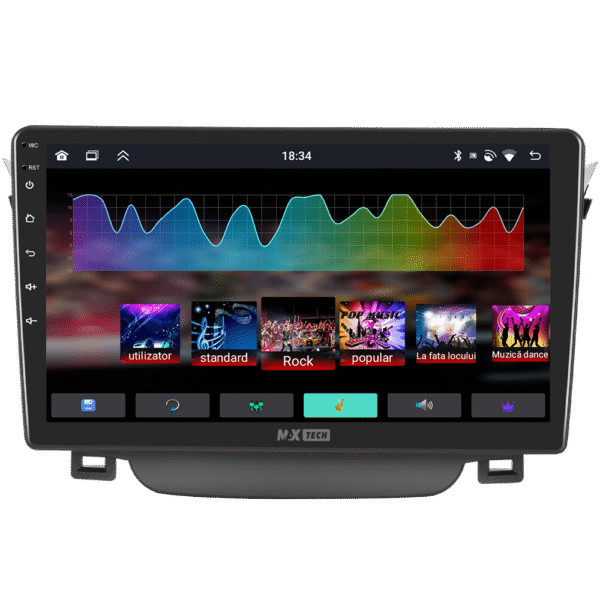 Sistemul include radio RDS cu afisare post si melodie, comutare automata pe frecventa cea mai buna si procesare audio DSP cu egalizator si filtru activ pentru sunet clar, echilibrat si personalizabil.