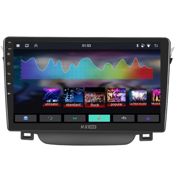 Sistemul include radio RDS cu afisare post si melodie, comutare automata pe frecventa cea mai buna si procesare audio DSP cu egalizator si filtru activ pentru sunet clar, echilibrat si personalizabil.