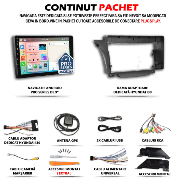 Navigatie Hyundai I30 2011-2016 dedicata, MaxTech® PRO SERIES, 6 GB Ram 128 GB Rom OctaCore, Carplay & Android auto, Ecran 9” HD Touch, GPS, Wifi, Bluetooth, Radio, USB, EQ, DSP, Waze, Youtube
