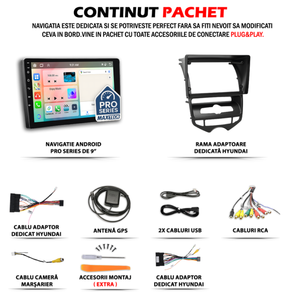 Navigatie Hyundai ix20 AC Automat (2010-2015) dedicata, MaxTech® PRO SERIES, 4 GB Ram 64 GB Rom OctaCore, Carplay & Android auto, Ecran 9 ” HD Touch, GPS, Wifi, EQ, Bluetooth, Radio, Waze, Youtube