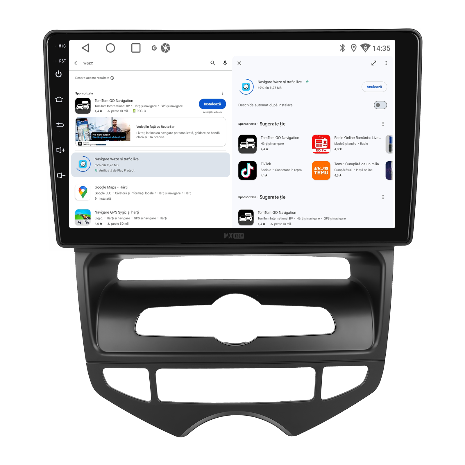 Sistemul ofera functionalitate de navigatie compatibila cu Google Maps, Waze, iGO si alte aplicatii, cu posibilitatea utilizarii hartilor atat online, cat si offline. Suporta comenzile de pe volan, asigurand un control rapid si sigur in timpul condusului.