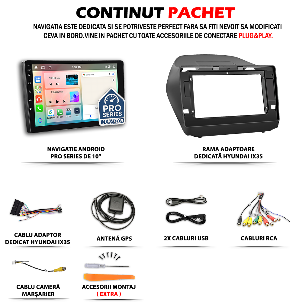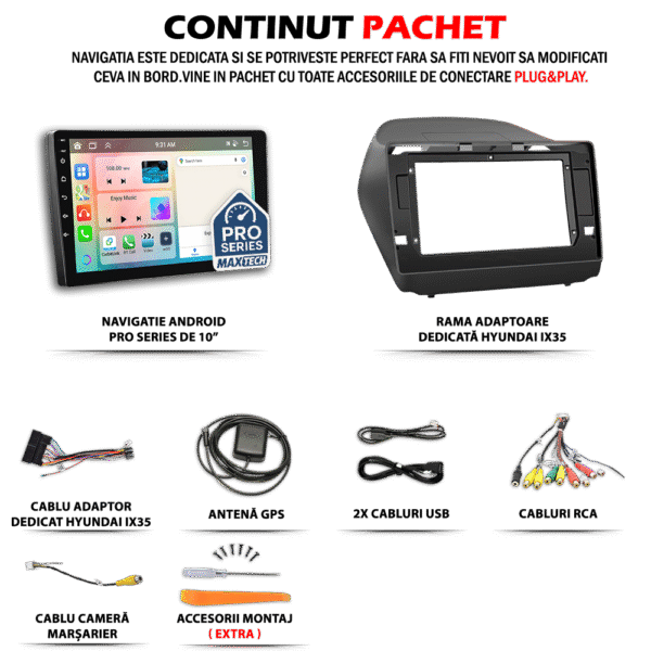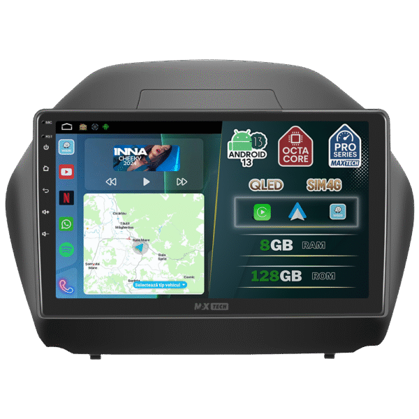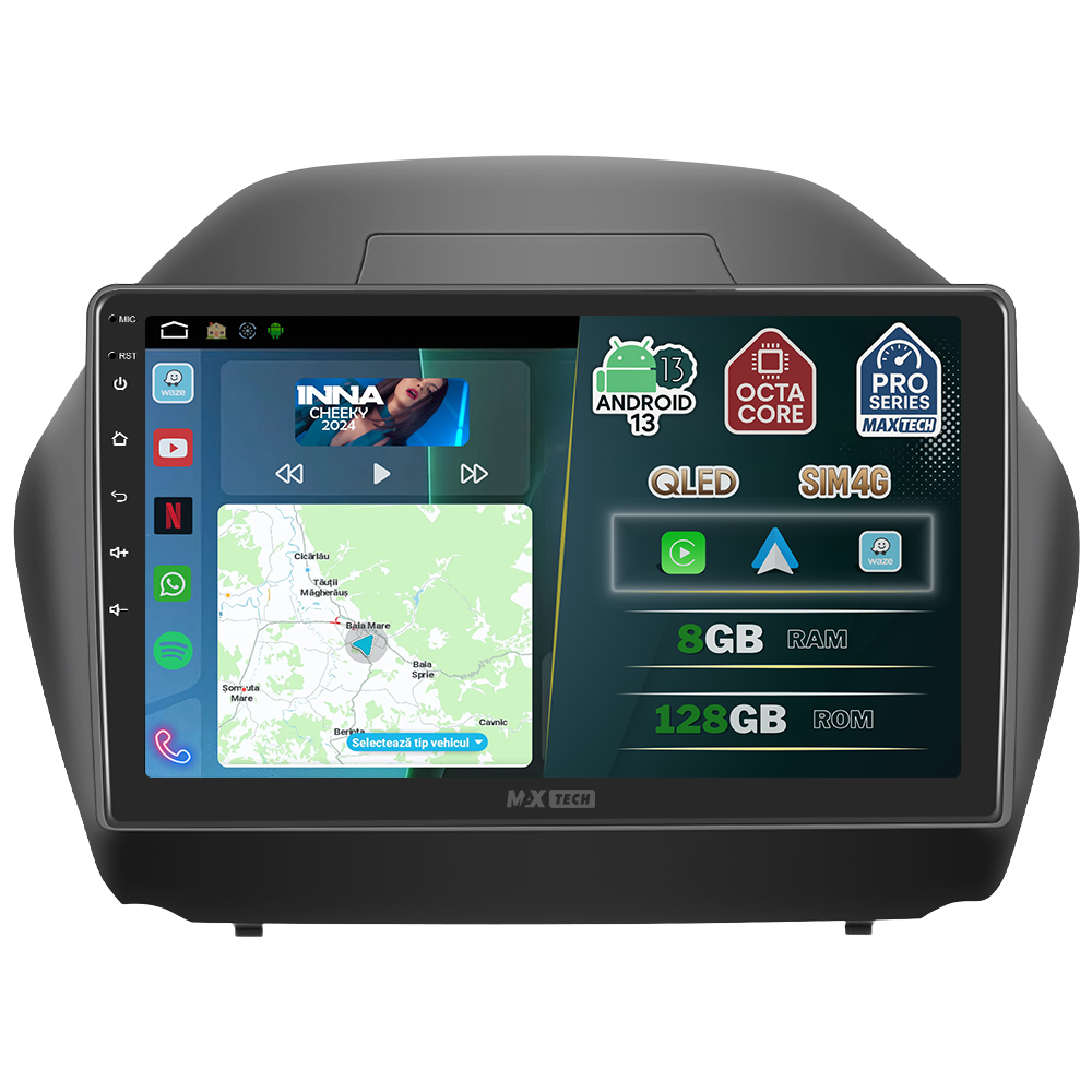 Navigatie Hyundai IX35 2009-2015 dedicata, MaxTech® PRO SERIES, 8 GB Ram 128 GB Rom OctaCore, Carplay & Android auto, Ecran 10” HD Touch, SIM 4G, GPS, Wifi, Bluetooth, Radio, EQ, Waze