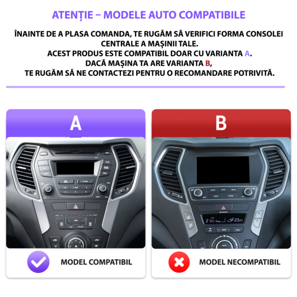 - Desi aceste sisteme sunt concepute pentru instalare de tip „Plug & Play”, in cazuri exceptionale, particularitatile specifice fiecarui model auto pot impune o atentie suplimentara in ceea ce priveste conectica si integrarea cu sistemele originale ale vehicululu . ( Daca este cazul, anumite atentionari vor fi evidentiate in imaginile produsului.)
