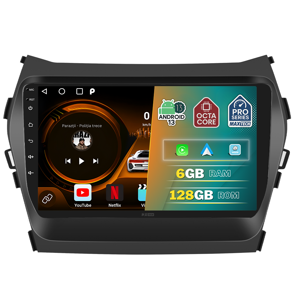 Navigatie Hyundai Santa Fe (2013-2016) dedicata, MaxTech® PRO SERIES, 6 GB Ram 128 GB Rom OctaCore, Carplay & Android auto, Ecran 9” HD Touch, GPS, Wifi, Bluetooth, Radio, Waze