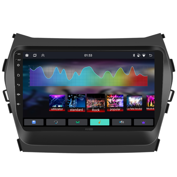 Sistemul include radio RDS cu afisare post si melodie, comutare automata pe frecventa cea mai buna si procesare audio DSP cu egalizator si filtru activ pentru sunet clar, echilibrat si personalizabil.