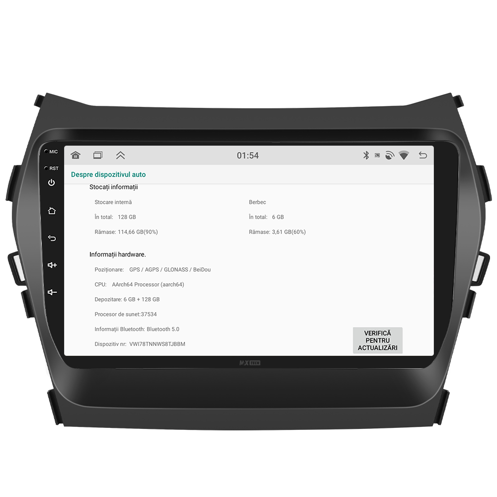 Sistemul MaxTech Pro Series este echipat cu un procesor OctaCore de tip 4+4, 6 GB RAM si 128 GB stocare, pentru multitasking rapid. Ecranul IPS HD de 1280×720 ofera culori reale si vizibilitate excelenta din orice unghi, cu design modern 2.5D.