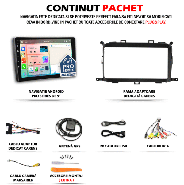 Navigatie KIA Carens 4 (2014-2017) dedicata, MaxTech® PRO SERIES, 2 GB Ram 32 GB Rom, Carplay & Android auto, Ecran 9 ” HD Touch, GPS, Wifi, Bluetooth, Radio, USB, EQ, DSP, Waze, Youtube