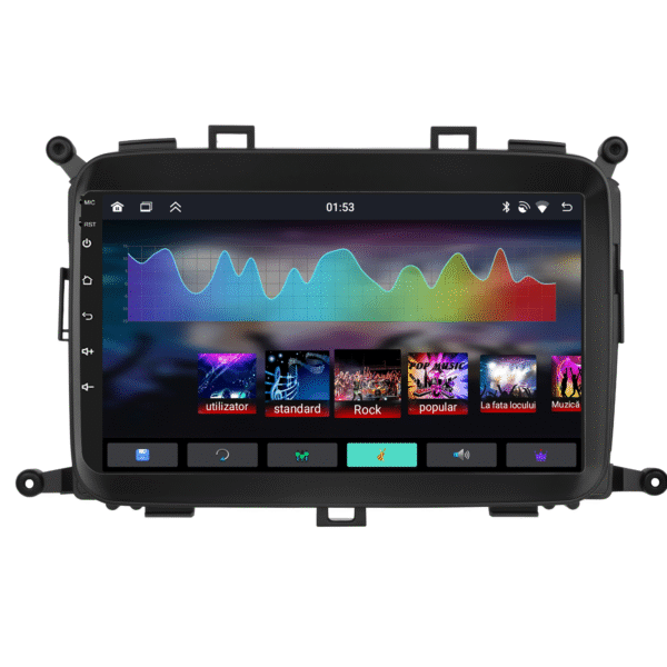 Sistemul include radio RDS cu afisare post si melodie, comutare automata pe frecventa cea mai buna si procesare audio DSP cu egalizator si filtru activ pentru sunet clar, echilibrat si personalizabil.
