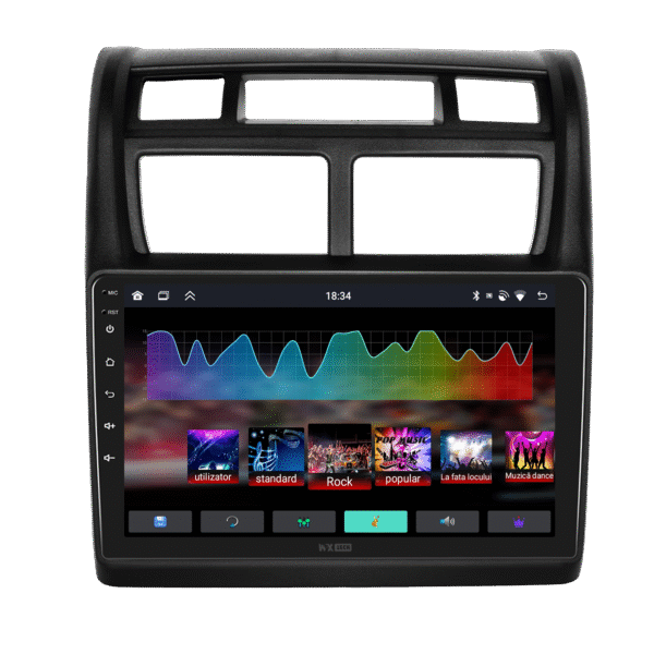 Sistemul include radio RDS cu afisare post si melodie, comutare automata pe frecventa cea mai buna si procesare audio DSP cu egalizator si filtru activ pentru sunet clar, echilibrat si personalizabil.