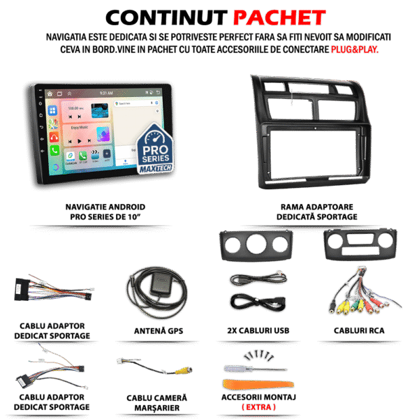 Navigatie KIA Sportage 2007-2013 dedicata, MaxTech® PRO SERIES, 4 GB Ram 64 GB Rom OctaCore, Carplay & Android auto, Ecran 9 ” HD Touch, GPS, Wifi, Bluetooth, Radio, USB, EQ, DSP, Waze